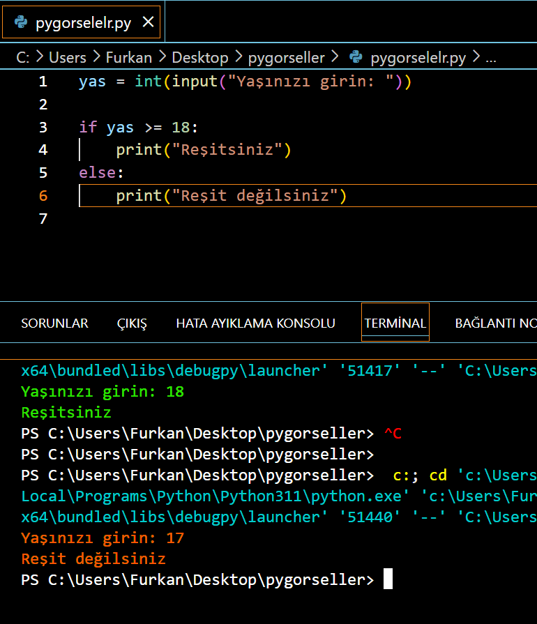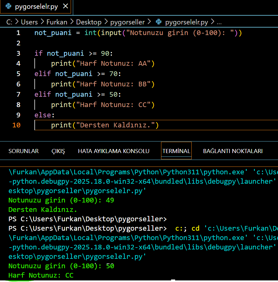 KOŞUL YAPILARI (if – elif – else)