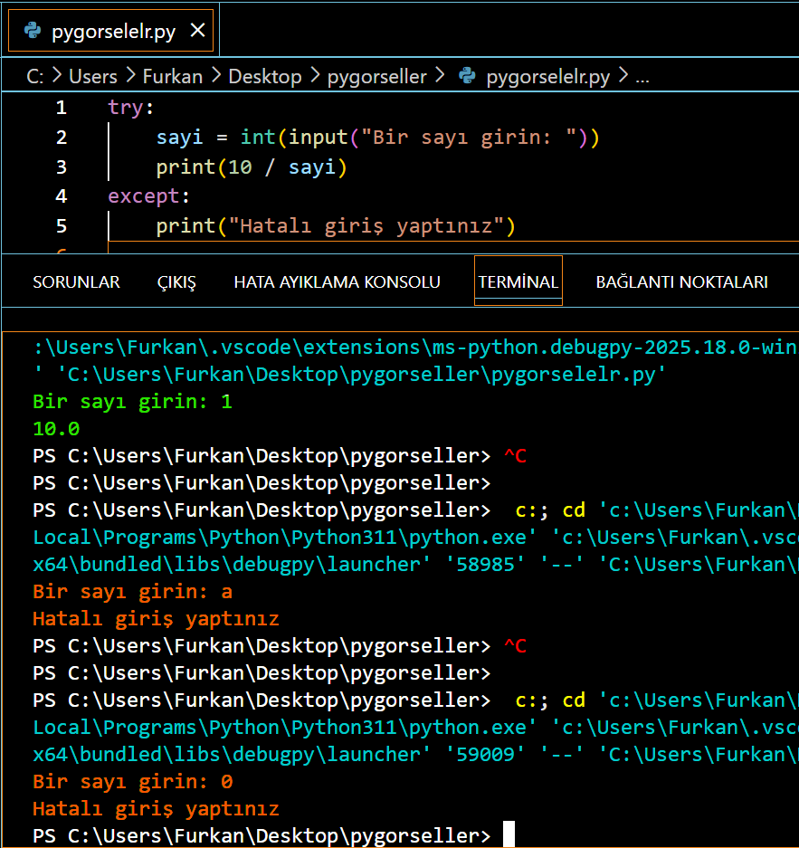 HATA YAKALAMA (TRY – EXCEPT)